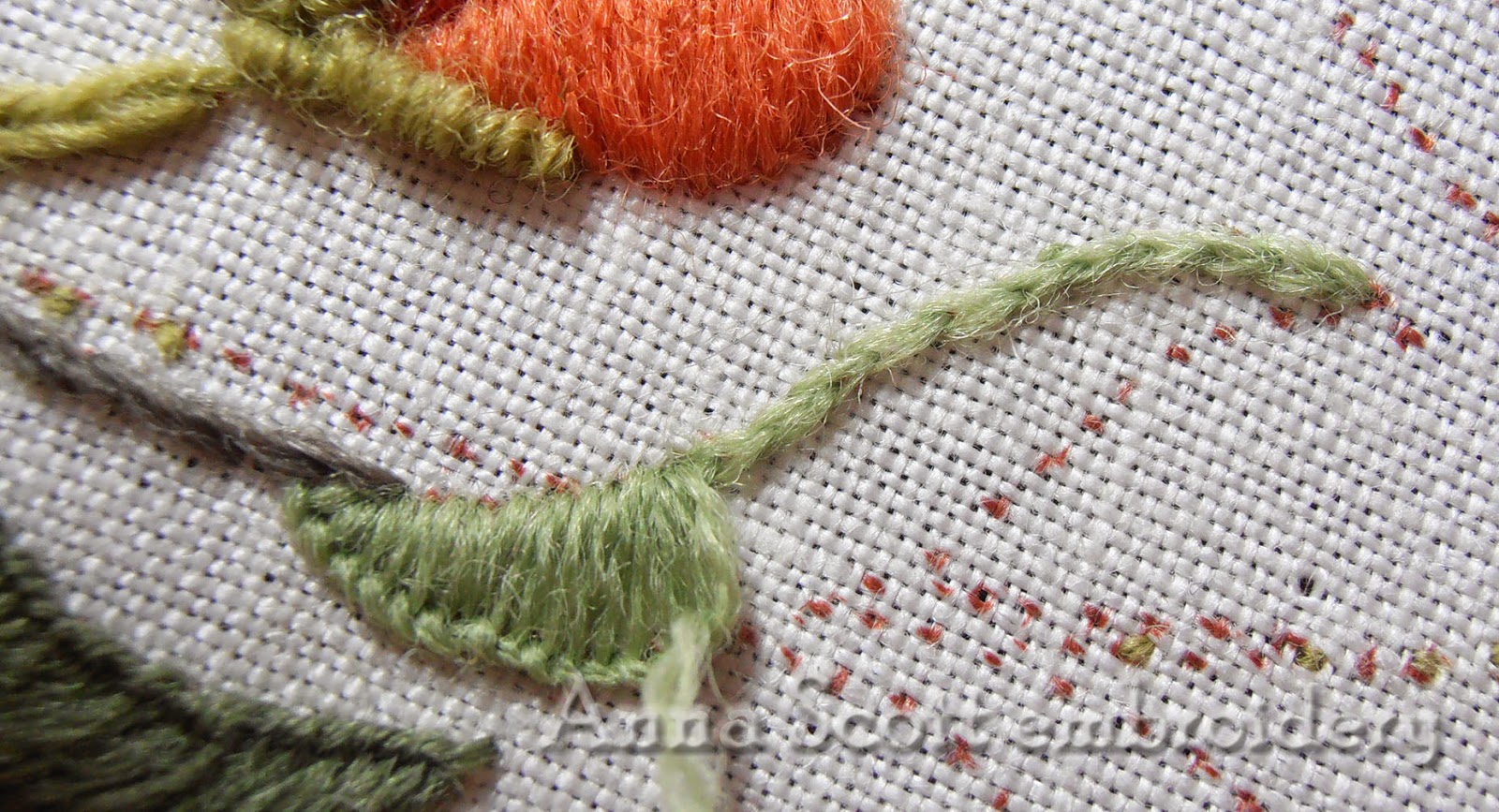 Next, plump and fat flowers... and yes, you did spot bullion knots! Those who knows me, will also know that bullion knots and I are not the best of friends. Sometimes a girl's gotta do, what a girl's gotta do and in this case there is no way getting around a few bullions. Breathe Anna, just breathe...